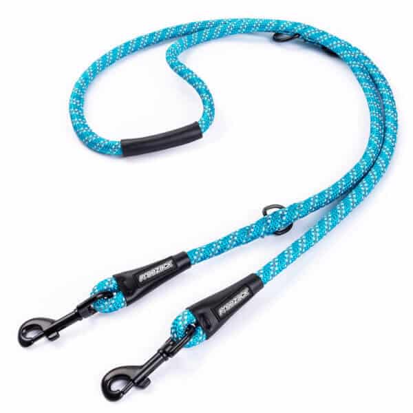 La laisse double Freezack Rope est fabriquée en corde de nylon robuste. Ses fils réfléchissants intégrés améliorent la visibilité et renforcent la sécurité. Grâce à ses multiples options de réglage, elle est idéale pour promener deux chiens, pour une attache temporaire ou pour la porter sur l’épaule. Associée à un harnais avec un point d’attache frontal sur la poitrine, elle offre un contrôle supplémentaire.